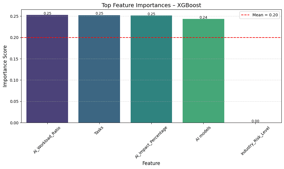 A machine learning research project that predicts AI automation risk across job roles and industries using classification models, feature engineering, and model evaluation visualizations.